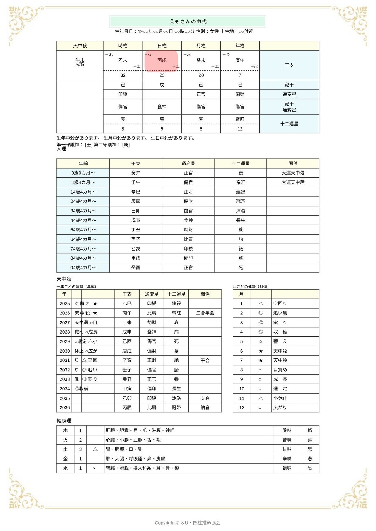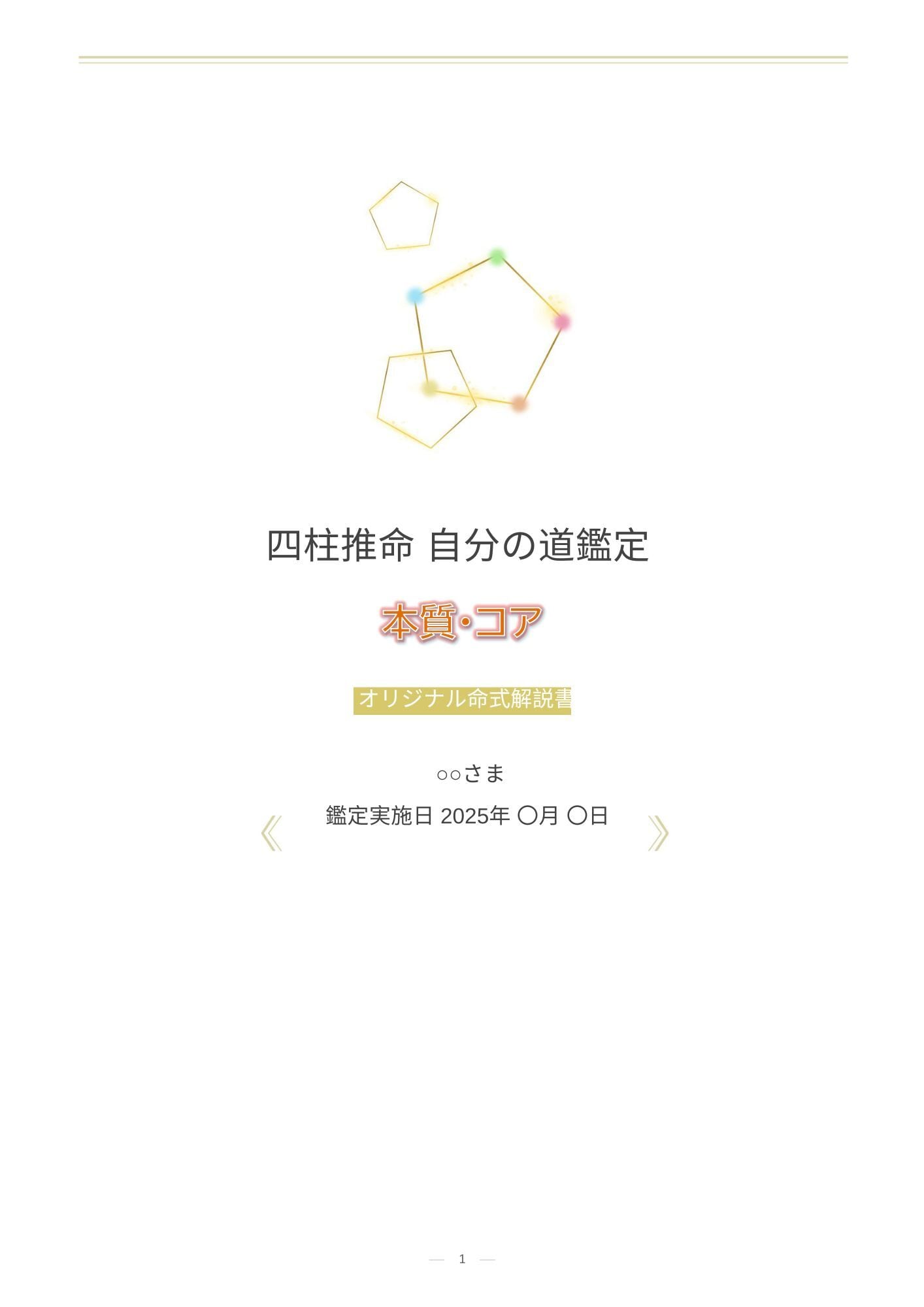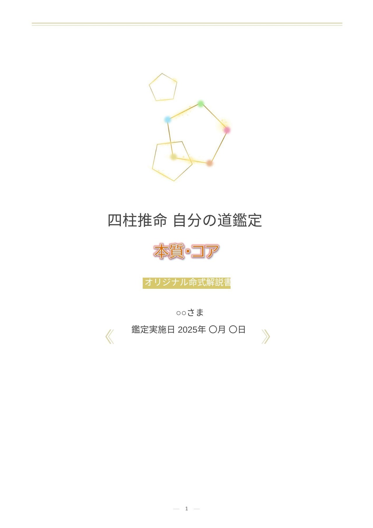 生年月日などから算出した命式と、プチ鑑定書(本質・コア)のセットです。