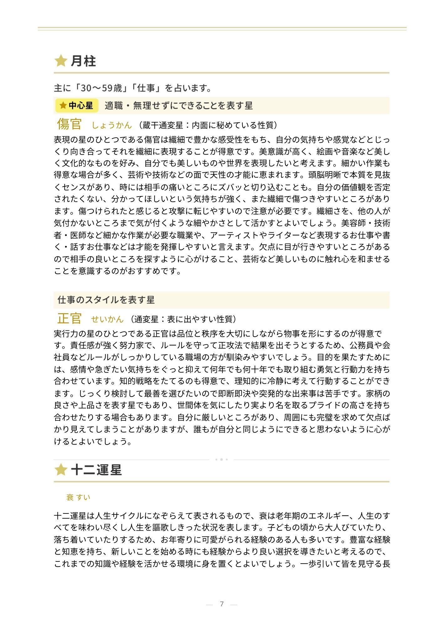 [キーワード:性格、本質、強み、仕事、得意・苦手、適職、才能、能力、プライベート、恋愛・結婚観、価値観、行動傾向、環境、自分の道、自分を見つめなおす、自己理解、自己PR、健康、サポート運、後押し、運気、天中殺、開運、開運行動、バイオリズム]