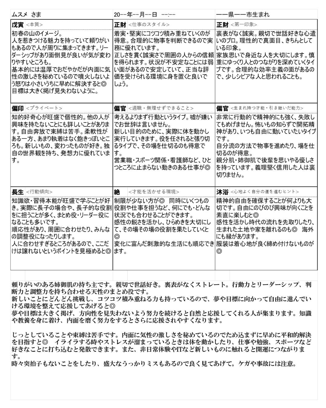 ご注文の際は、命式を出すための必要事項を注文時に備考欄へご記入ください。