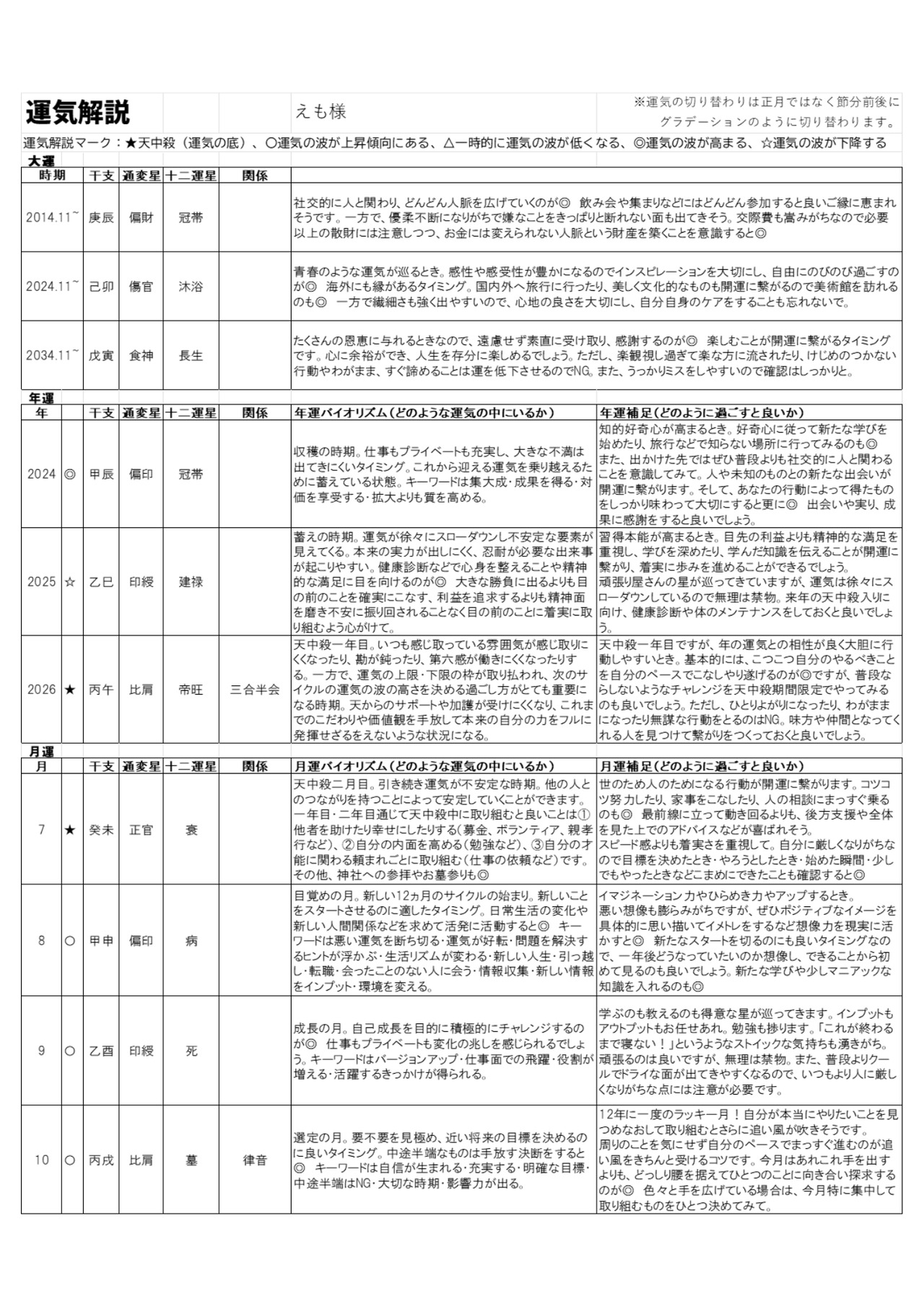 ・2026年運気解説書 2026.2月〜の年運1年分および12ヶ月分の月運解説A4 2枚
