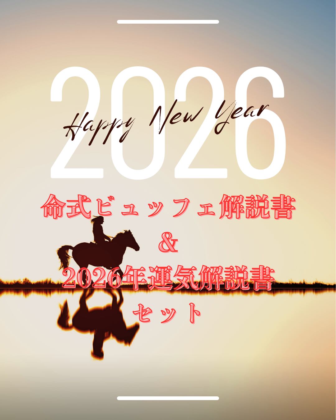 生年月日などから算出した命式と、四柱推命鑑定命式ビュッフェ解説書(通常価格3,300円)・2026年の運気解説書(通常価格12ヶ月分4,950円)のセットです。